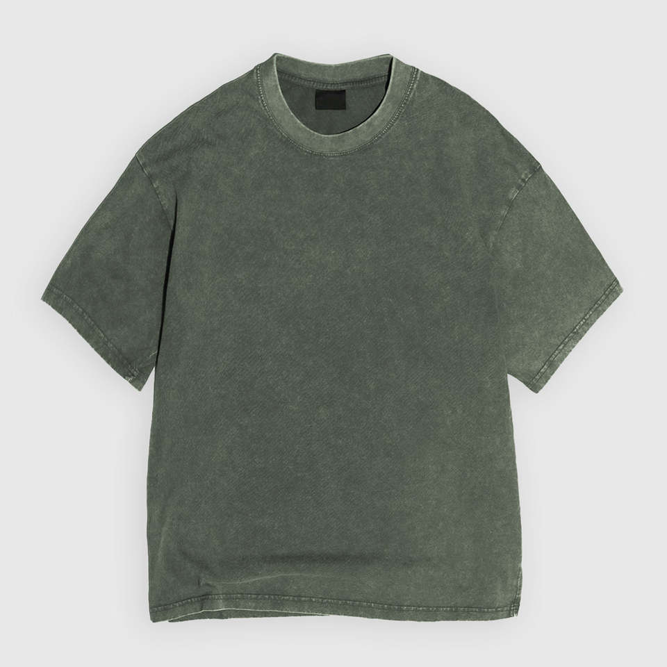 T-shirt pour homme en coton 100% tricoté, coupe classique, vert olive délavé, col rond, streetwear décontracté, étiquette privée personnalisée