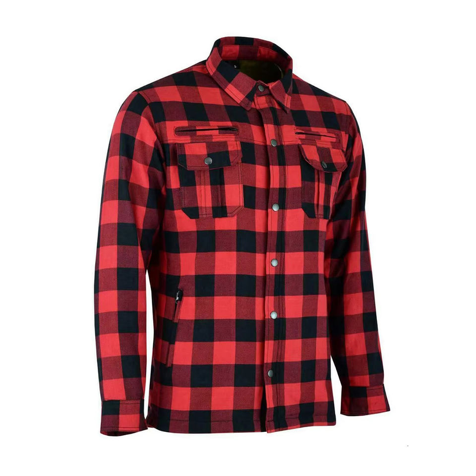 Mens Womens Custom Plus Size for Lined Flannel Biker Shirt CE Armor Anti-UV Breathable Flame-Retardant