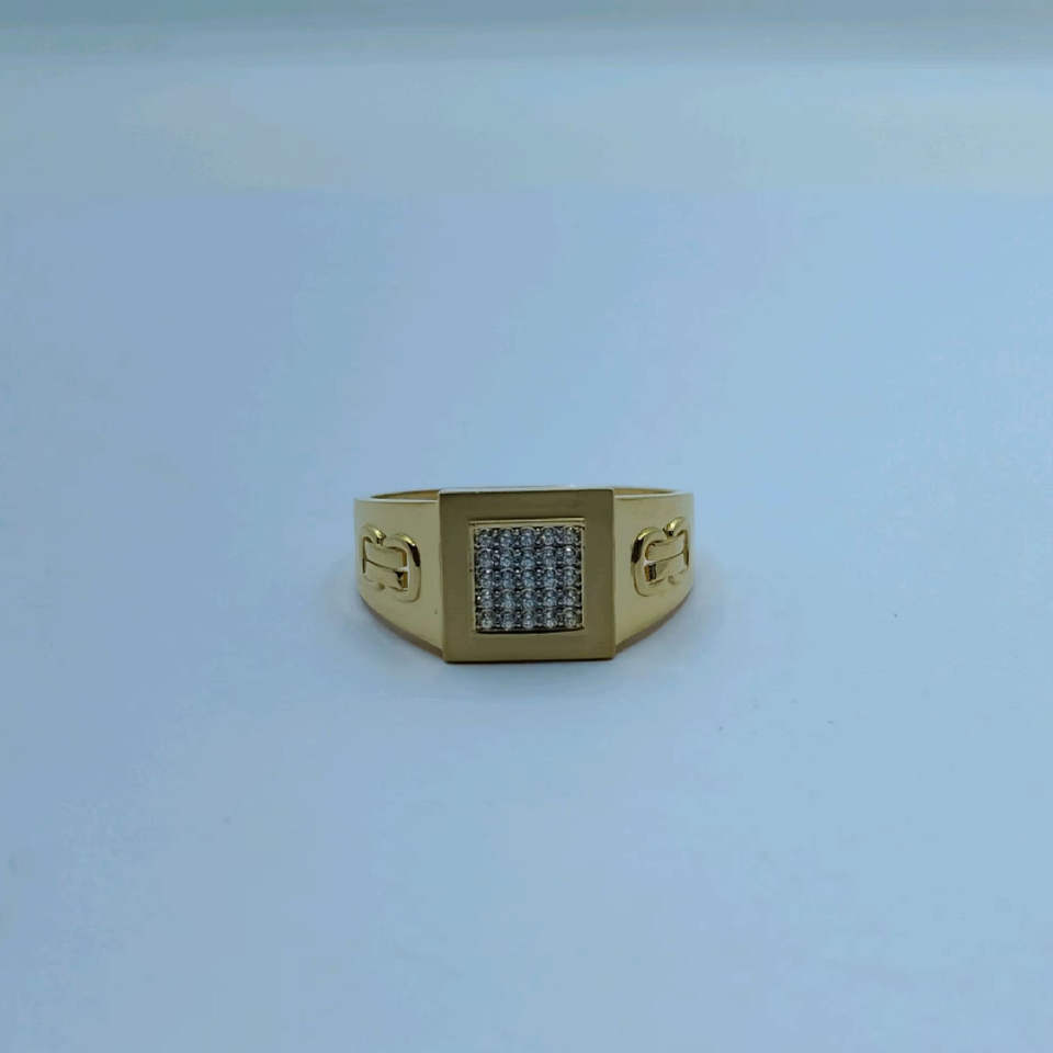 Bague pour homme en or jaune avec un centre en grappe de diamants carrés et un anneau poli au design audacieux et moderne