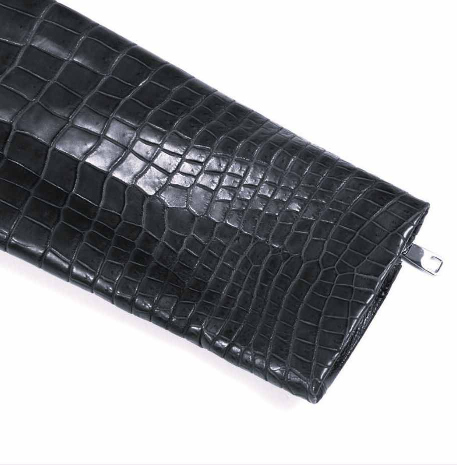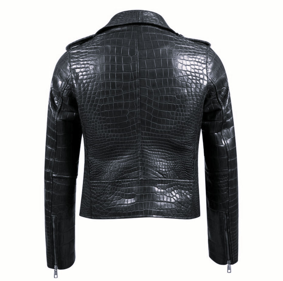 Unisex Black Embossed Canvas Leather Bomber Jacket with Crew Neck and Buckle Belt Waterproof Windproof & Breathable
