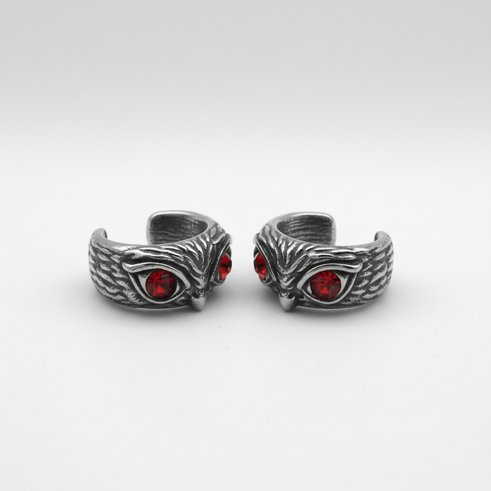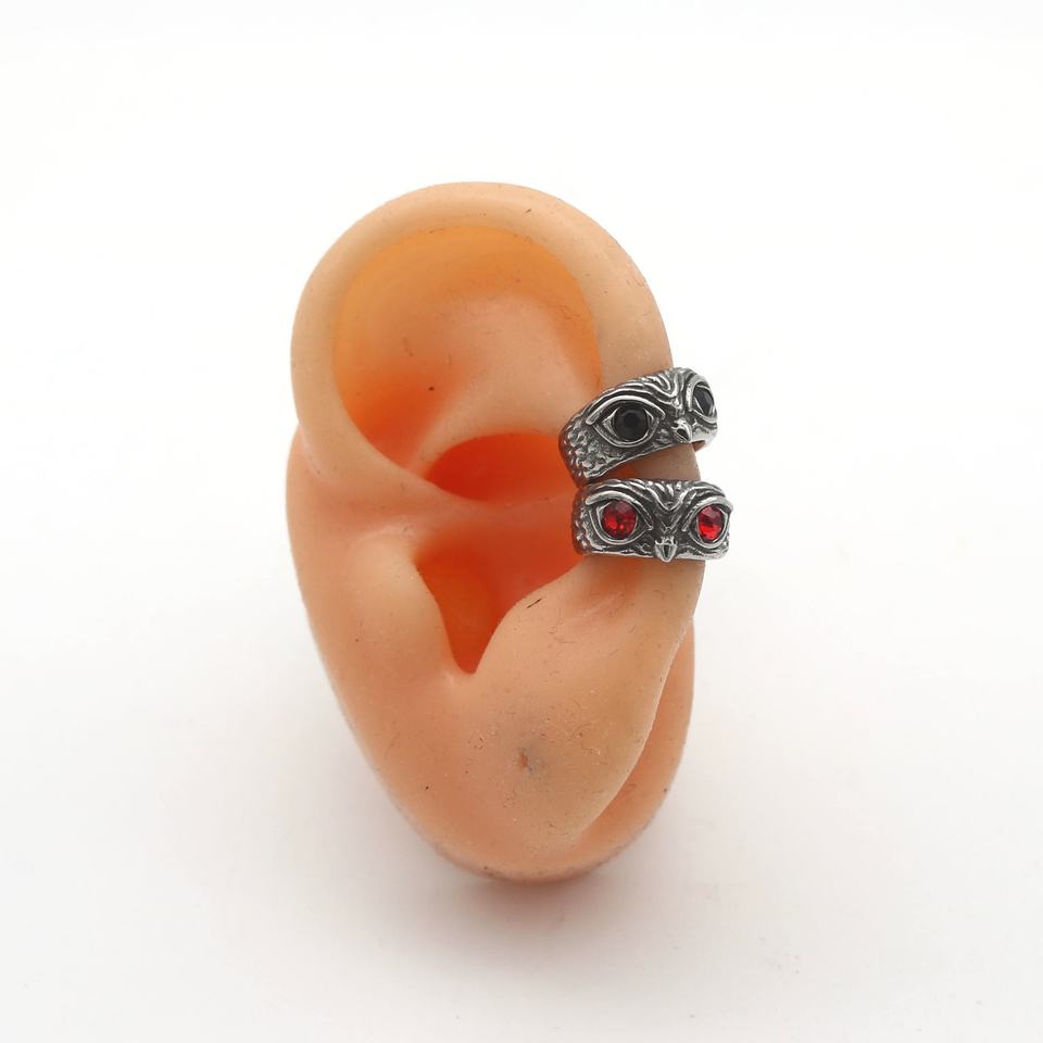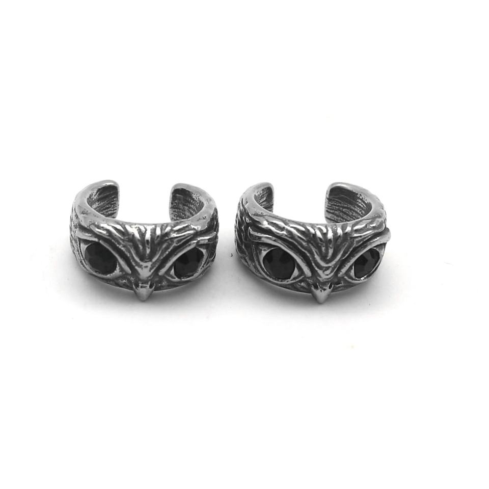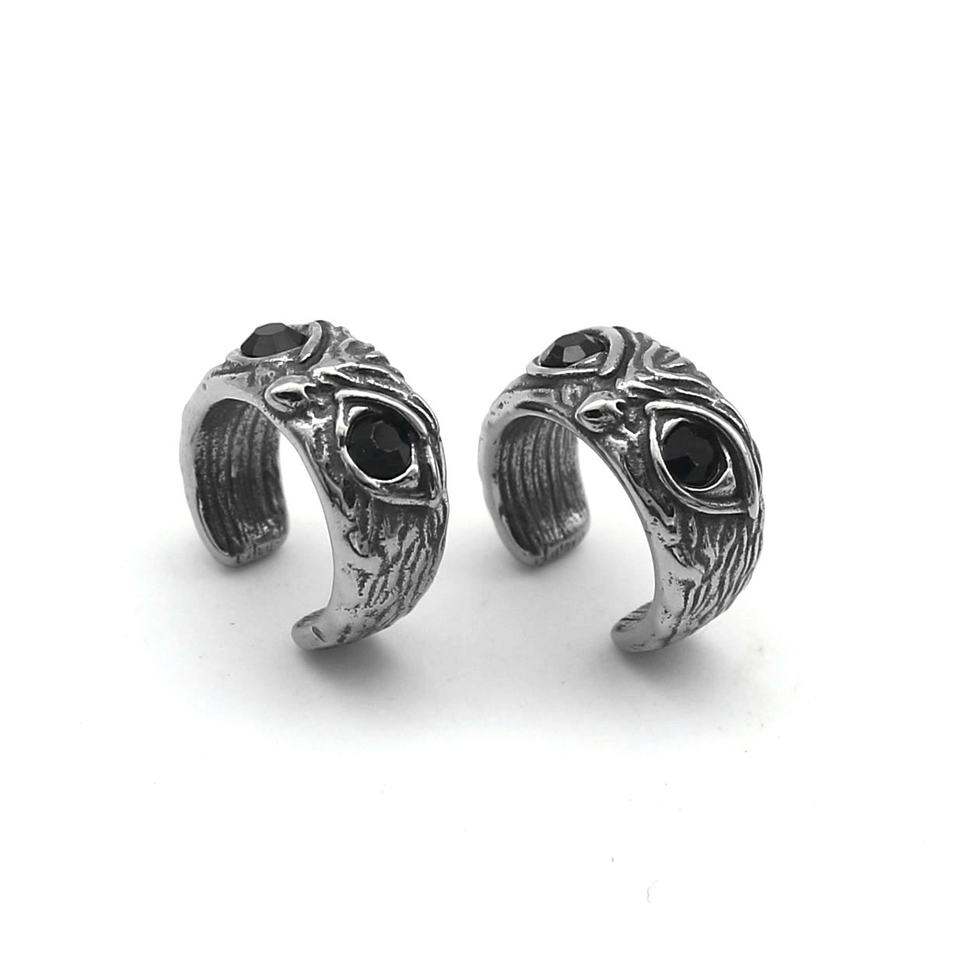 Mens custom Cuff Earring 316L Stainless Steel Waterproof Tarnish Resistant Owl CZ Stone Clip Ear Cartilage Punk Viking Gift