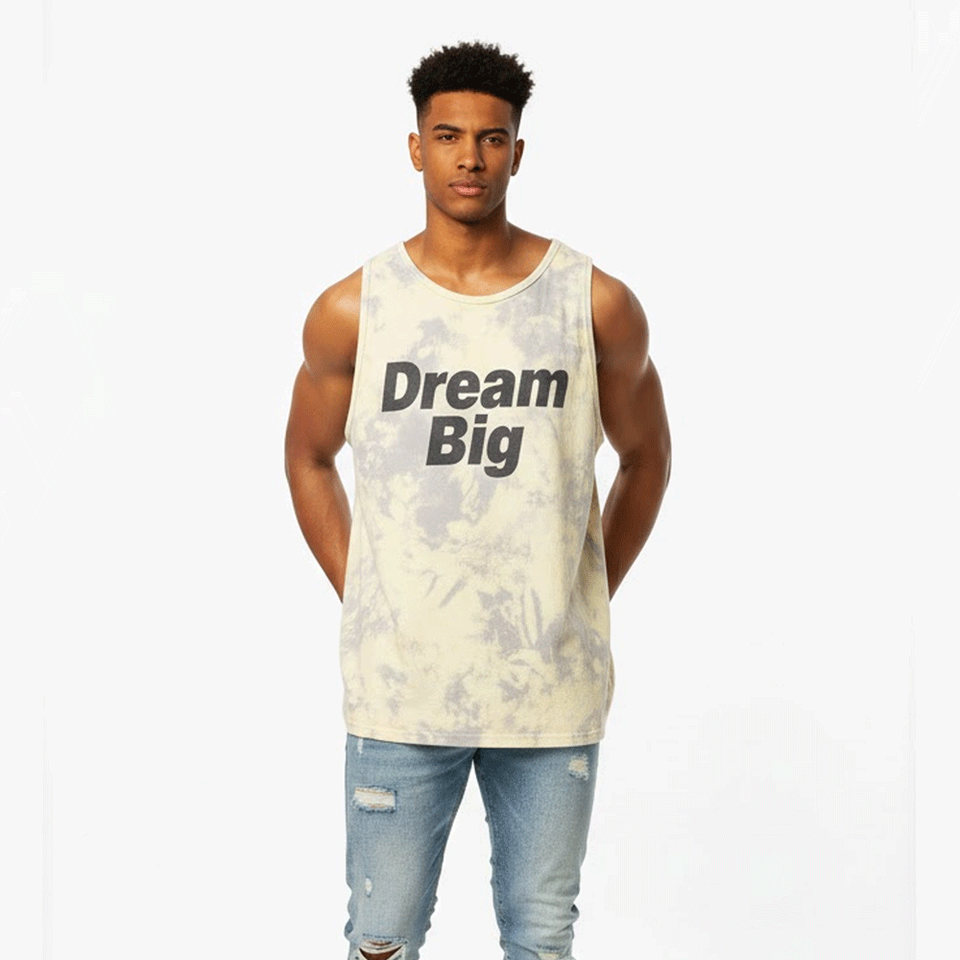 Débardeur pour homme en spandex/polyester anti-boulochage, séchage rapide, respirant, sans manches, avec inscription « Dream Big », décontracté