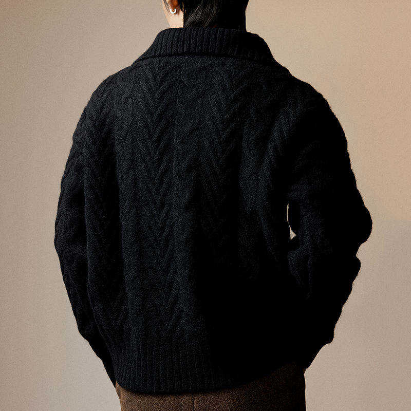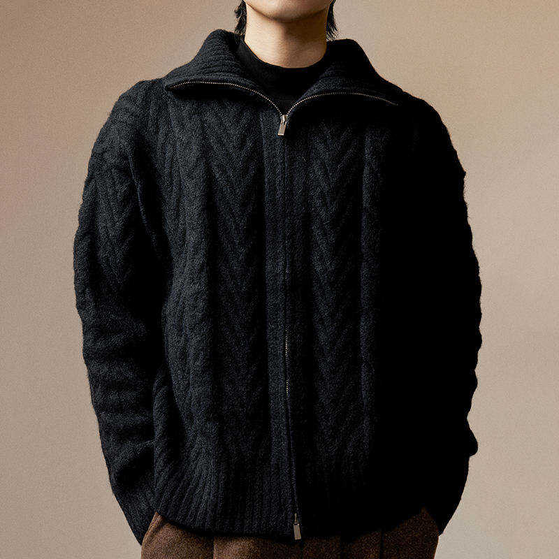 Pull col montant en maille torsadée zippé pour homme