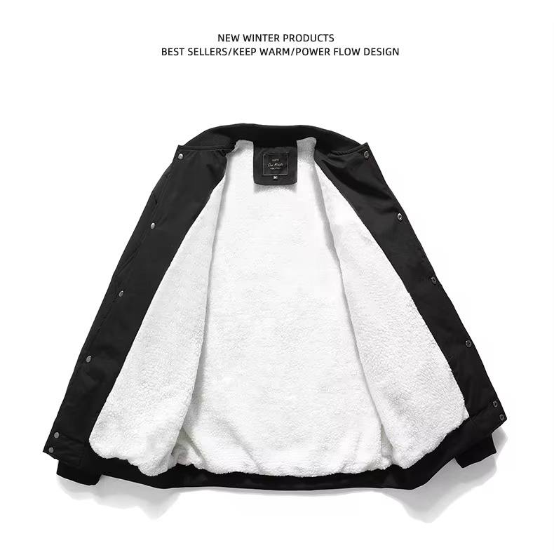 Blouson aviateur en velours épais pour homme, couleur unie, coupe ample, style baseball classique, adapté pour le printemps et l'hiver
