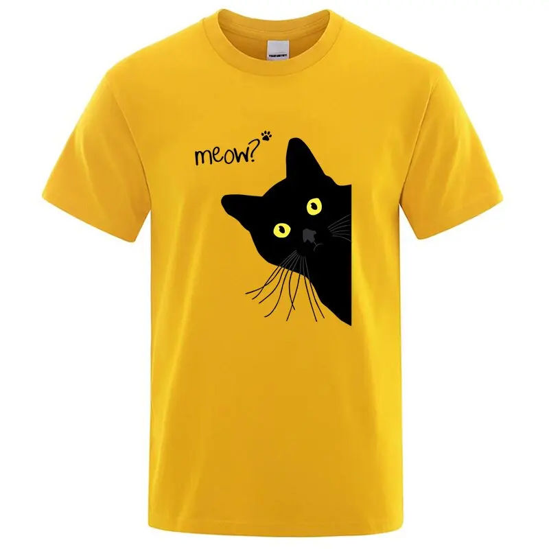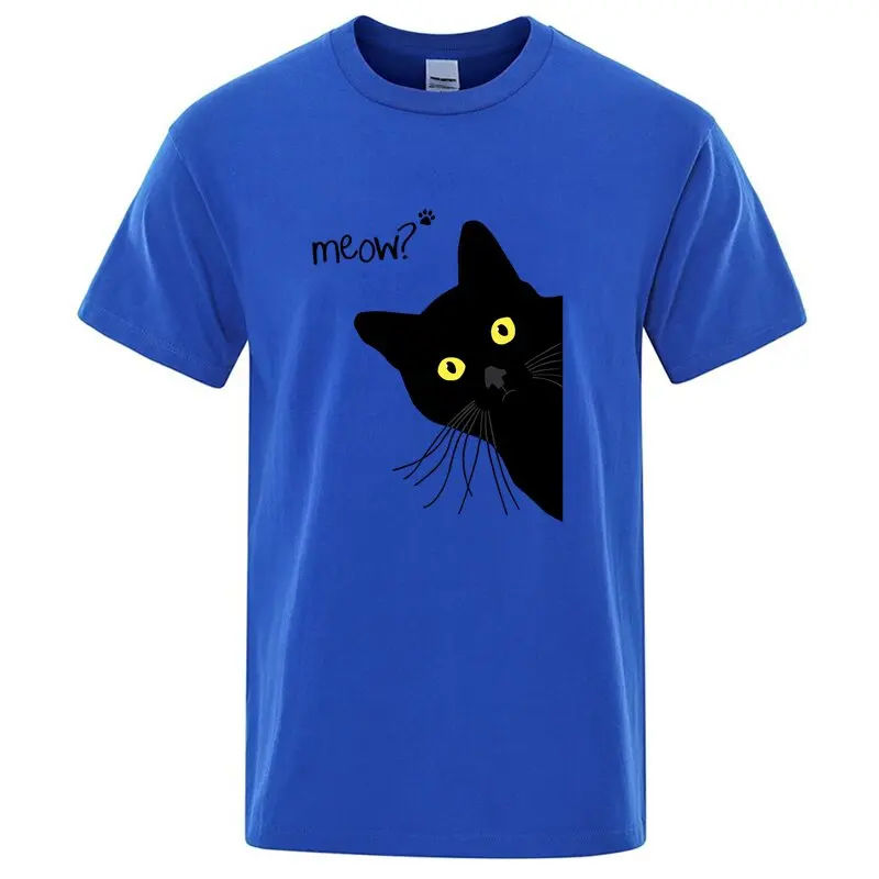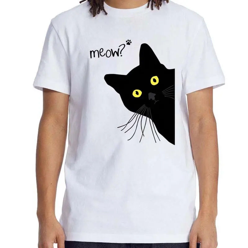 Meow Black Cat Funny Printing Men T-Shirts Tees Clothes Summer Streetwear Tops Male High Quality Loose Cotton Short Sleeve