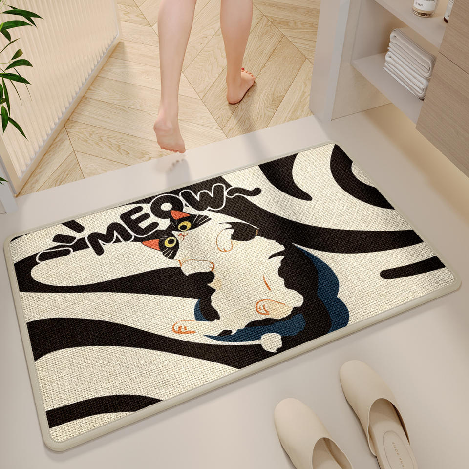 Tapis de salle de bain rectangulaire Meow Meow Cartoon, antidérapant, absorbant l'eau, séchage rapide, tapis de toilette, fibre de polyester