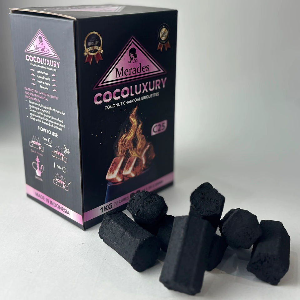 Merades Luxury Coquille de noix de coco Shisha & Hookah Chaleur raffinée Faible teneur en cendres & Odeur Session prolongée Qualité pour le Maroc Charbon de bois Maroc