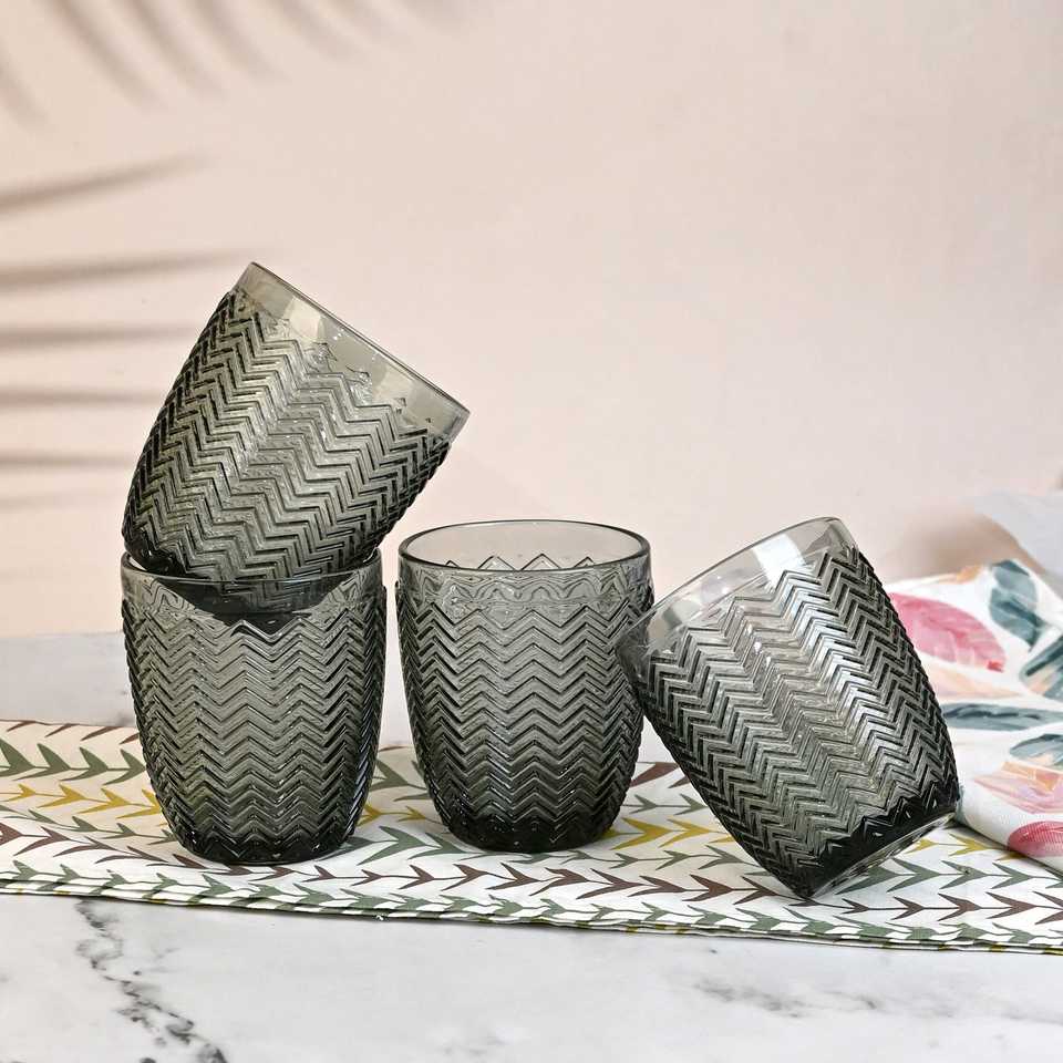 Ensemble de 6 verres à boisson en verre gaufré subtil Meraki, vert marin et gris fumé, compatibles lave-vaisselle, pour les fêtes