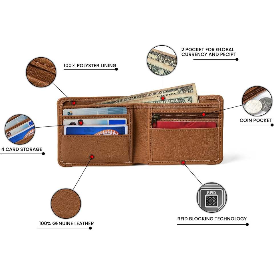 Portefeuille en cuir de vachette classique pour hommes pince à billets RFID Slim avec 8 fentes Tan & White Type de fermeture ouverte