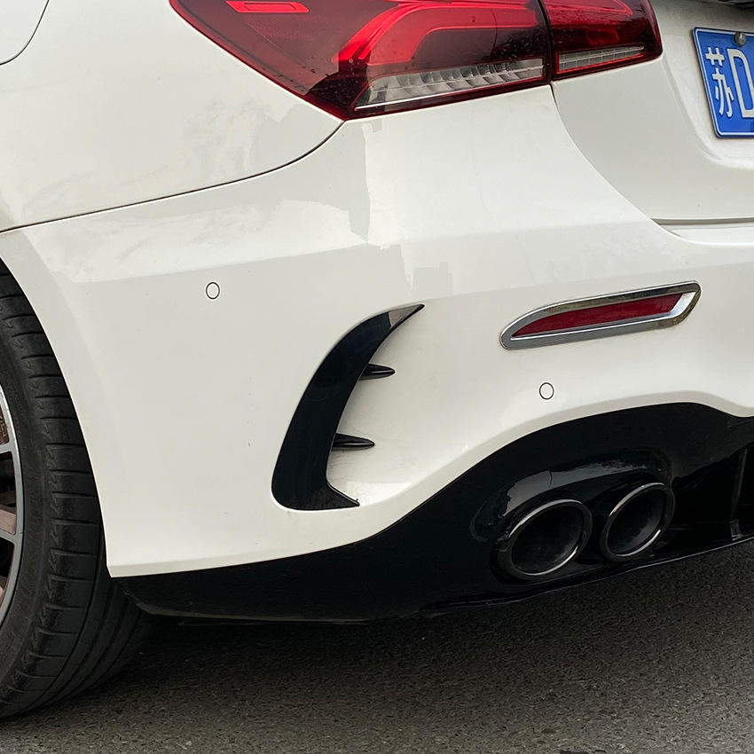 Mercedes-Benz A-Class W177 Rear Bumper Canard Replacement Piano Black Carbon Fiber Texture Plastic Sports Style Weather Shields