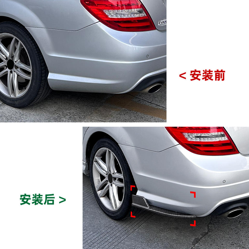 Mercedes-Benz C-Class W204 Rear Bumper Corner Decals Piano Black Carbon Fiber Texture Adhesive Exterior Modification