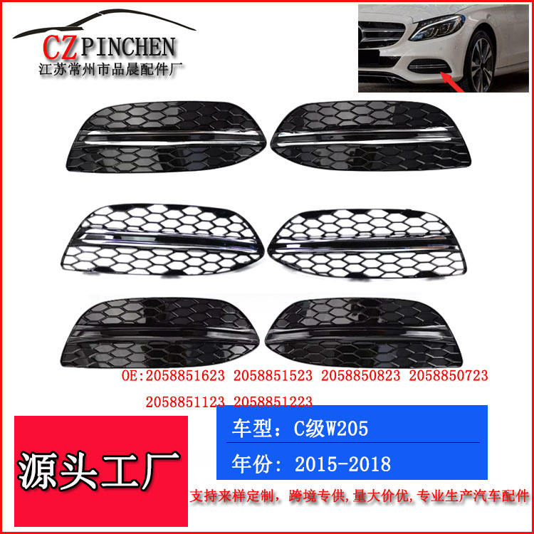 Grille de protection des feux antibrouillard pour Mercedes-Benz Classe C W205 2015-2018, garniture de pare-chocs avant inférieure en ABS, paire