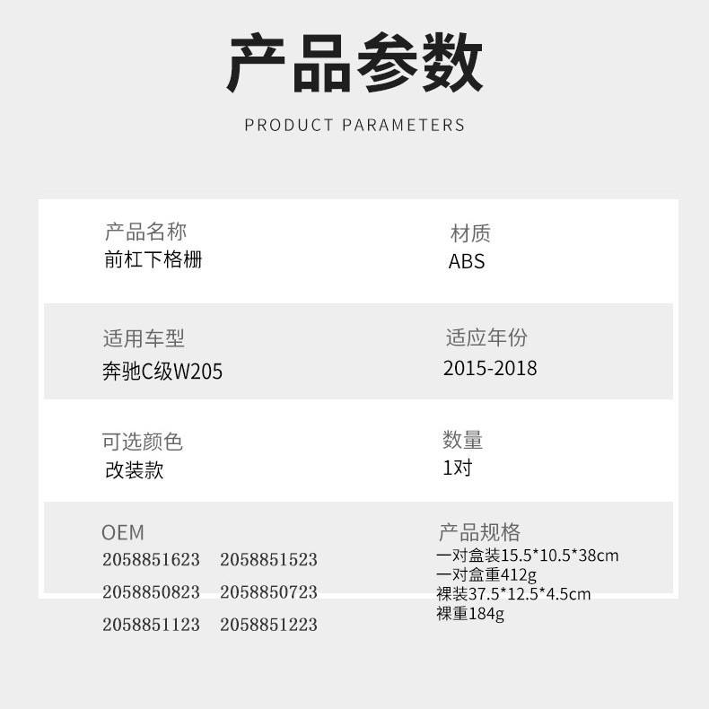 Applicable to 2015-2018 Mercedes-Benz C-Class W205Applicable models