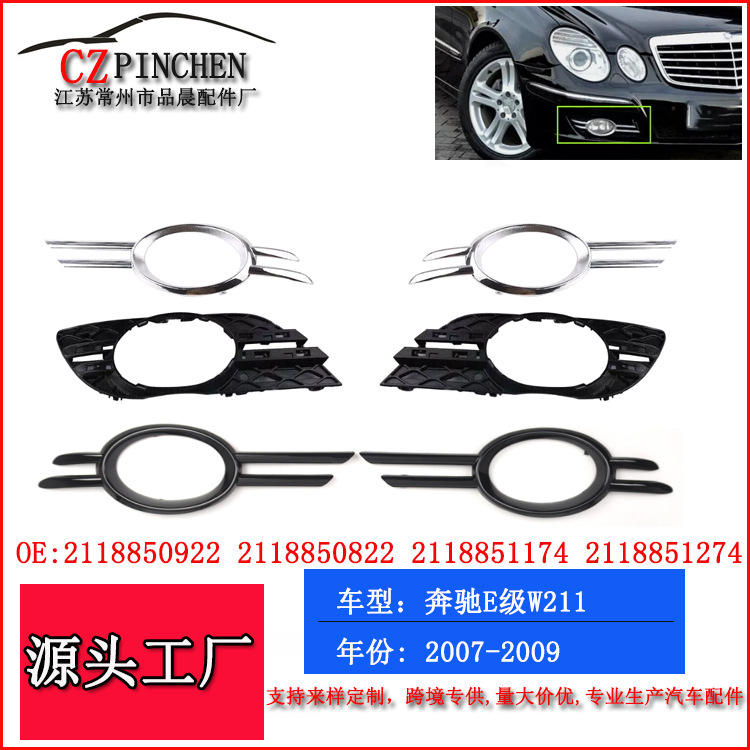 Encadrements de feux antibrouillard Mercedes-Benz Classe E W211 2007-2009, garniture chromée ABS, accessoire de calandre inférieure du pare-chocs avant