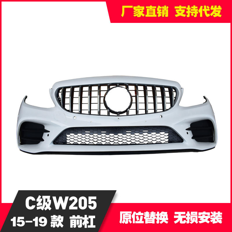 Pare-chocs avant Mercedes-Benz W205 pour Classe C 2015-2019 avec emplacements pour feux antibrouillard, kit de modernisation