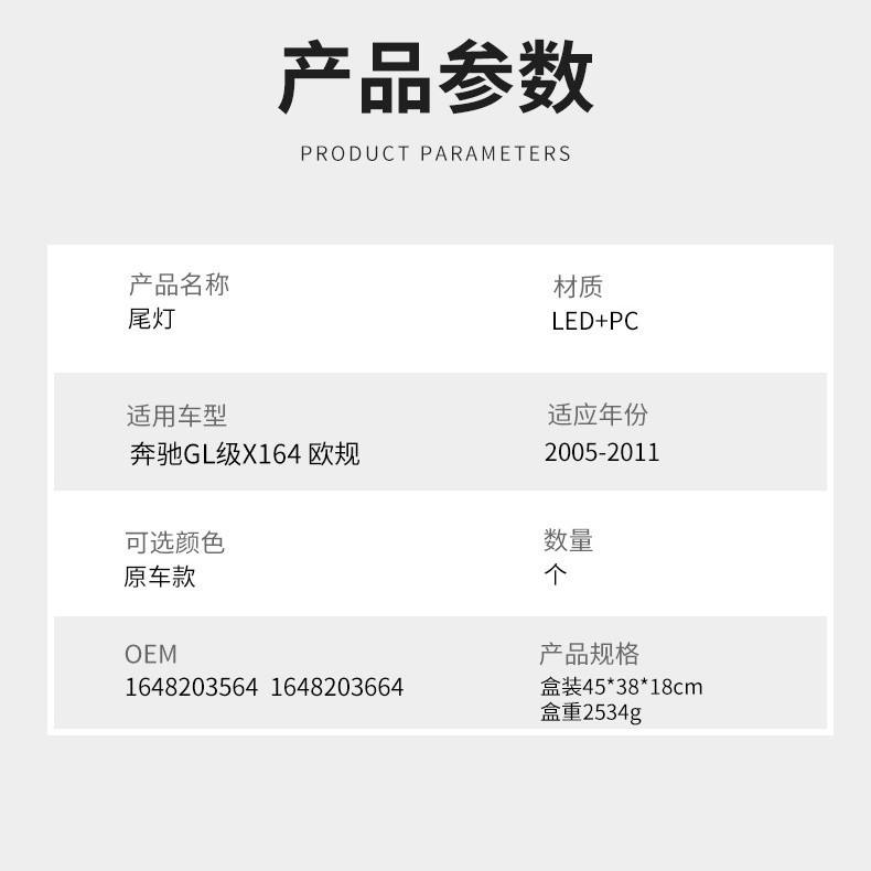 Feux arrière LED Mercedes-Benz Classe GL X164 2005-2011 Spécifications européennes OEM 1648203564 1648203664