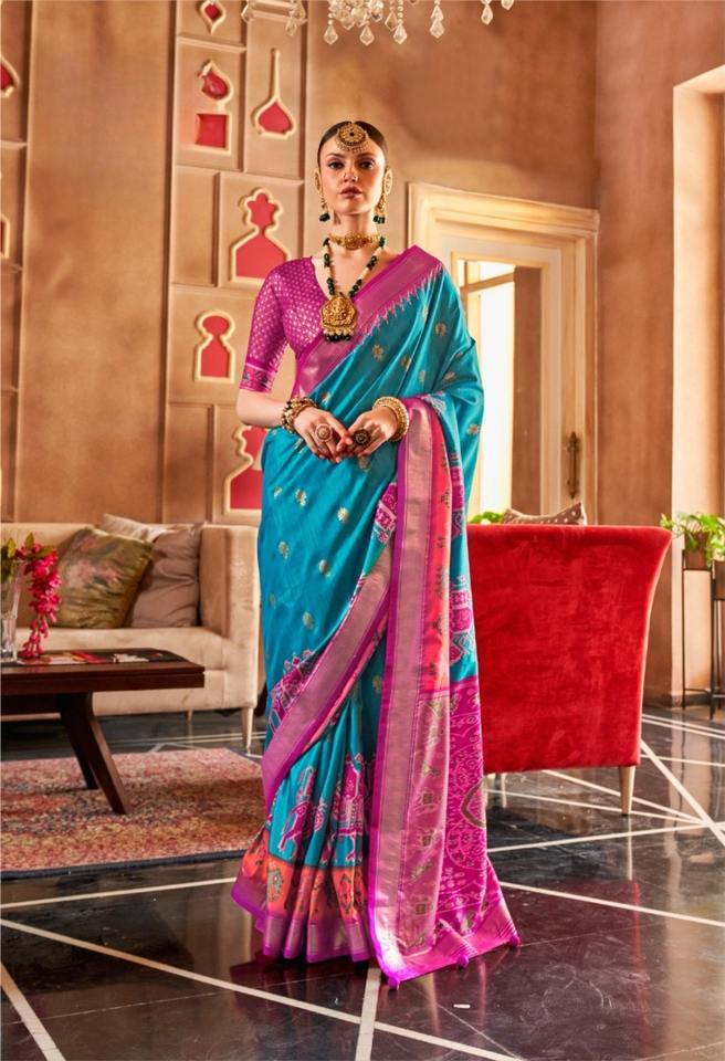 Mercerizer Sigma Silk Classic Patola Design Saree With Sambalpuri Pallu With Aqua Finish Perfect For Wedding Season