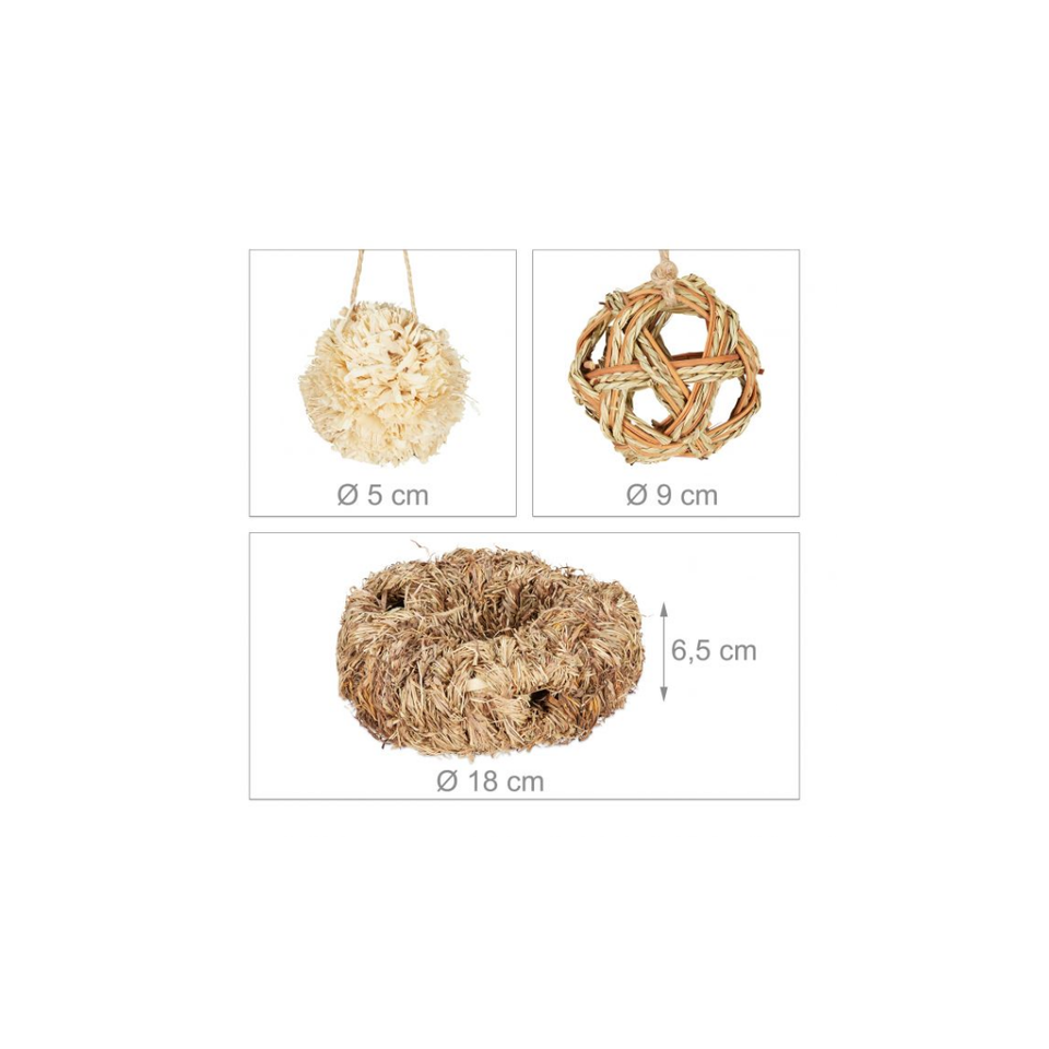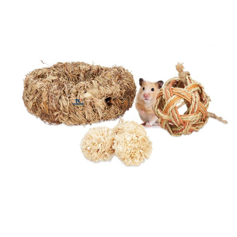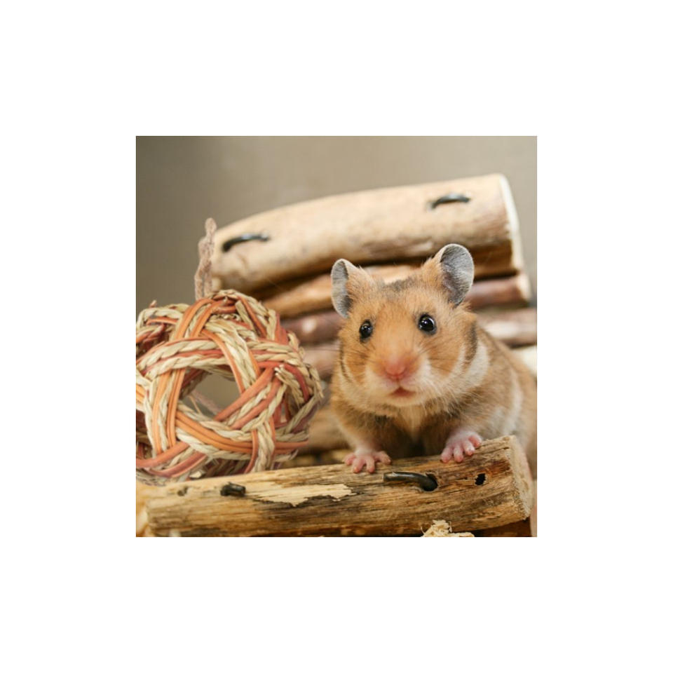 Meric Small Wood Tunnel en jonc de mer écologique couleur naturelle avec boules à motifs animaux pour Hamsters, Lapins, Cochon d'Inde