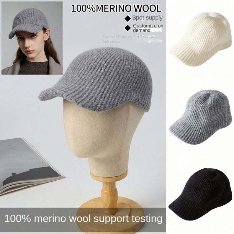 Casquette de baseball unisexe en laine mérinos, nouvelle collection automne-hiver 2025, en laine tricotée pour l'extérieur