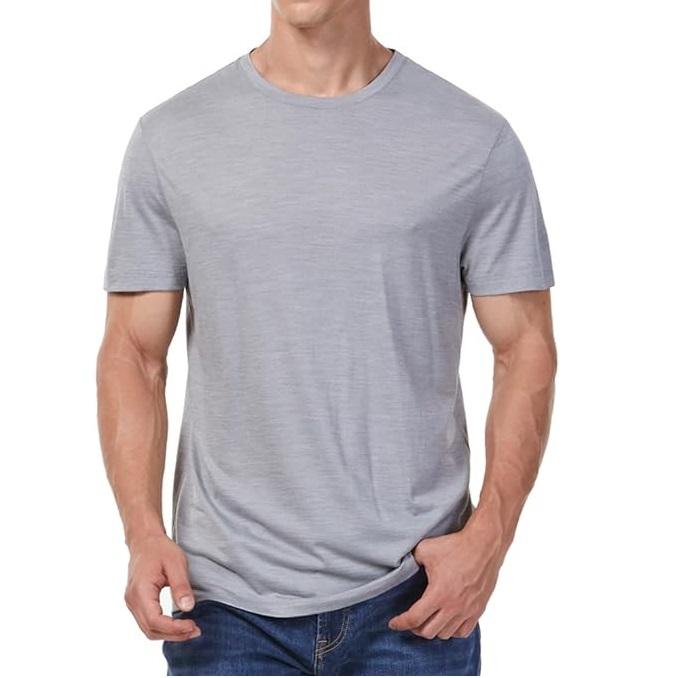 Merino Wool Custom Summer Sportswear Men T-Shirt Plain Neck Streetwear Eco-Friendly 300g Breathable