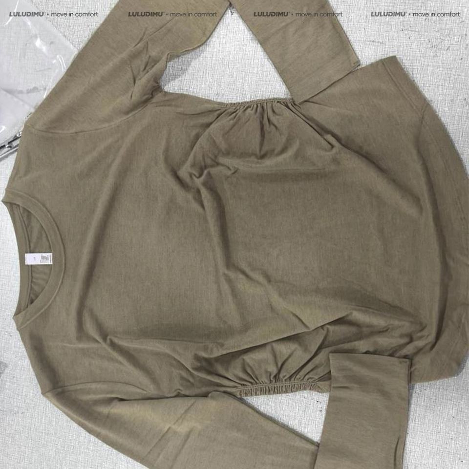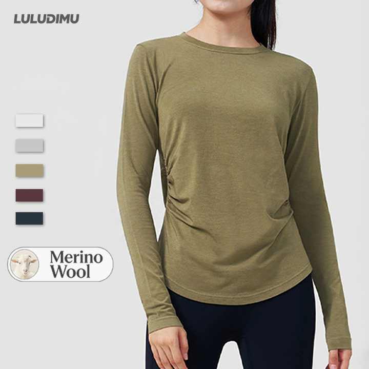 Haut de sport à manches longues en laine mérinos légère, col rond, coupe classique, respirant, extensible, séchage rapide, idéal pour le yoga