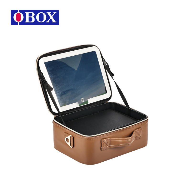 Trousse de maquillage Merlad grande capacité avec fermeture éclair et poignée souple, marron Maillard, collection Printemps 2024