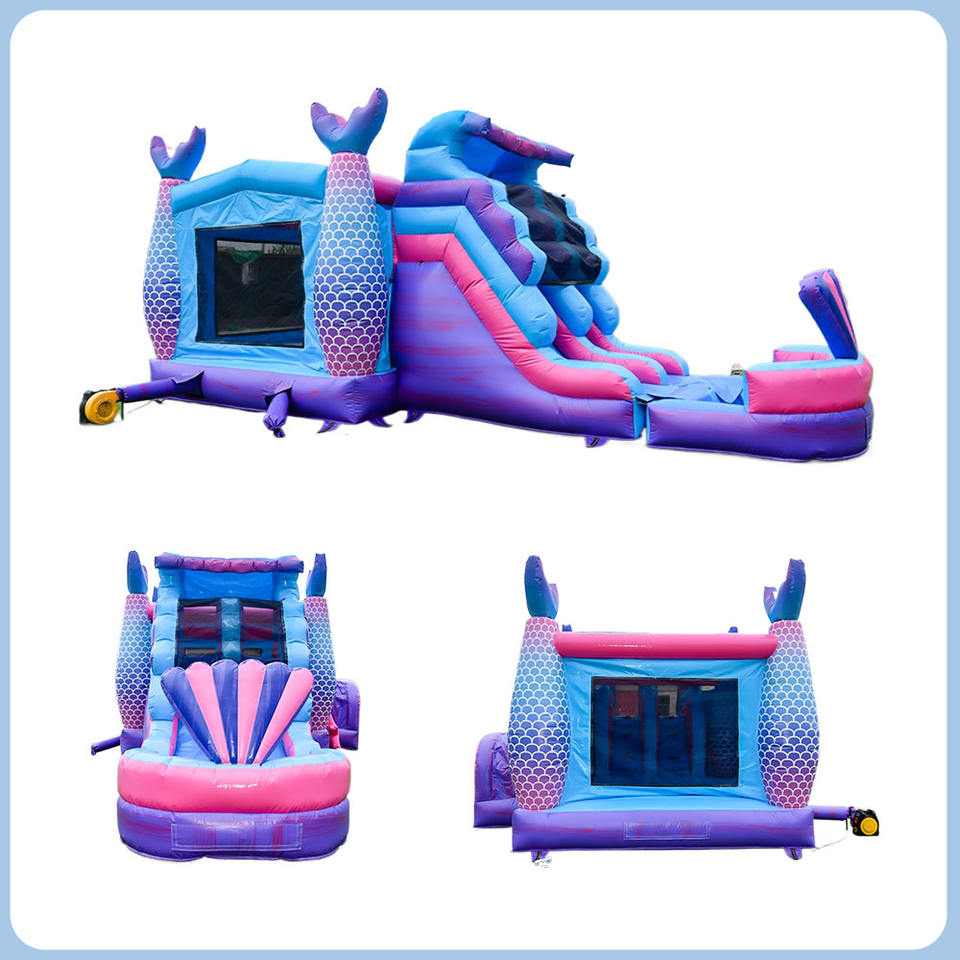 Château rebondissant de sirène Château en PVC extérieur Château sautant commercial Videurs à l'extérieur Parc aquatique gonflable avec piscine