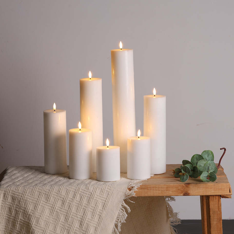Bougie LED sans flamme à piles en cire de paraffine, fabriquée à la main, écologique et sûre, modèle PILLAR de Mermei