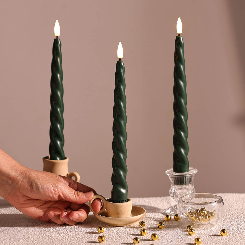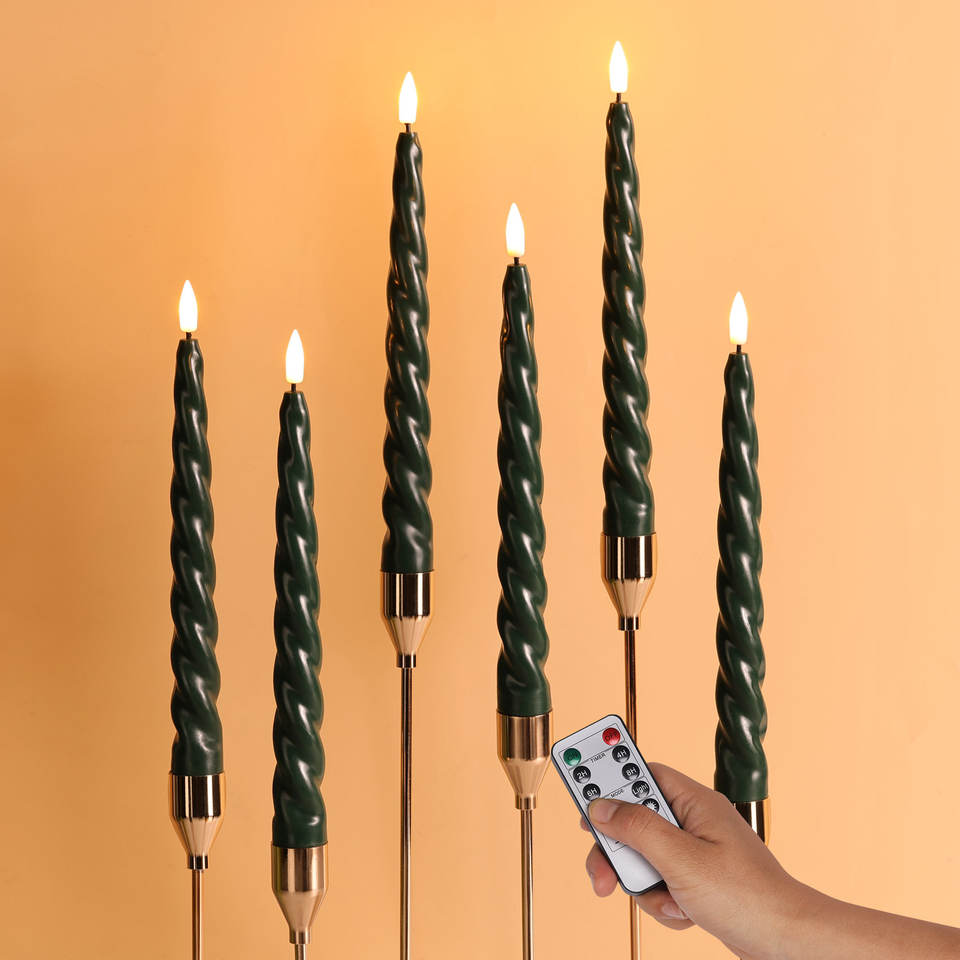 Décoration d'intérieur Mermei, bougie conique en cire de paraffine sans flamme LED 3D à flamme réelle, finition lisse, télécommande, batterie