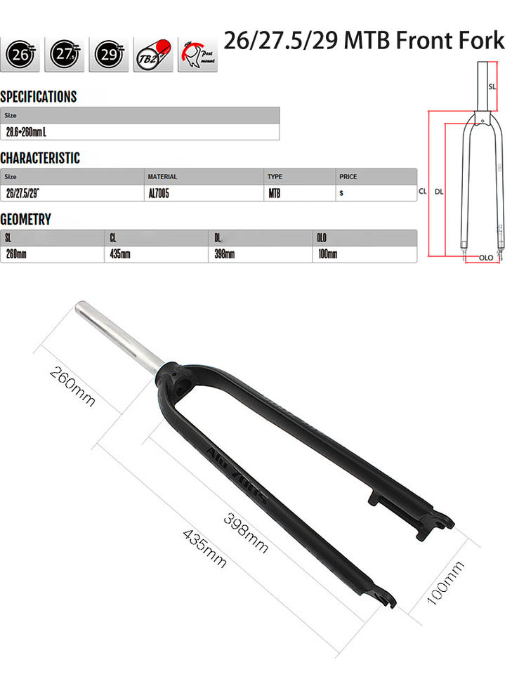 Meroca-Fourche rigide ultralégère M6 26/27. Fourche avant vtt de 5/29 pouces pour VTT Pure Disc Brake
