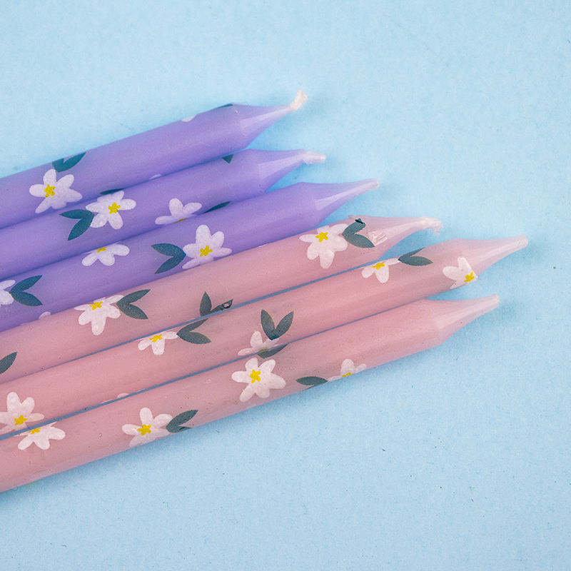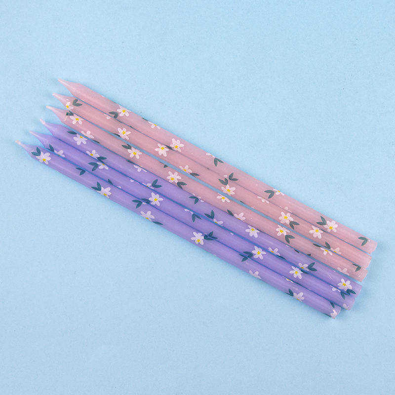 Merri Wish Pack 16 Long Thin Slender Pencil Shape Promotional Festive Kids Party Celebration Cake Daisy-pattern Birthday Candles