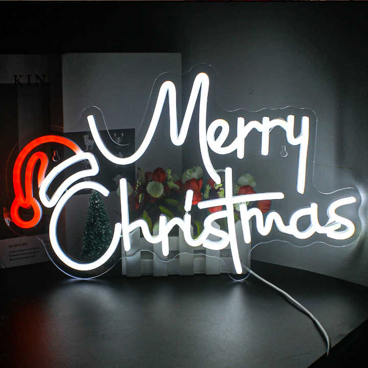 Panneaux lumineux LED néon Joyeux Noël avec télécommande pour la décoration de mariage, la publicité, l'utilisation en bar, alimentation DC