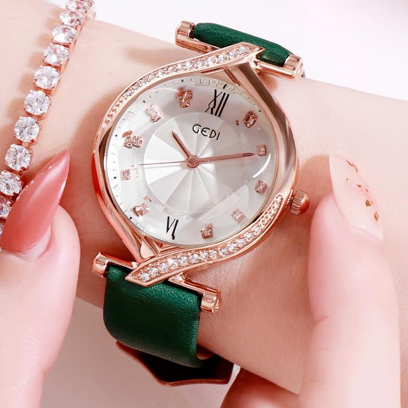 Merry Christmas Niche Luxury Women Watch Diamond Embellished Vintage Leather Quartz