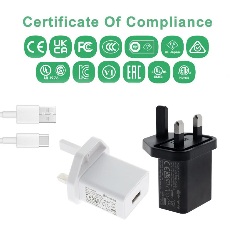 Merryking 3 Pin UK Plug 5v 1a 2.1a 5v 0.75a Usb Charger 5volt 1amp avec UKCA CB CE Certified