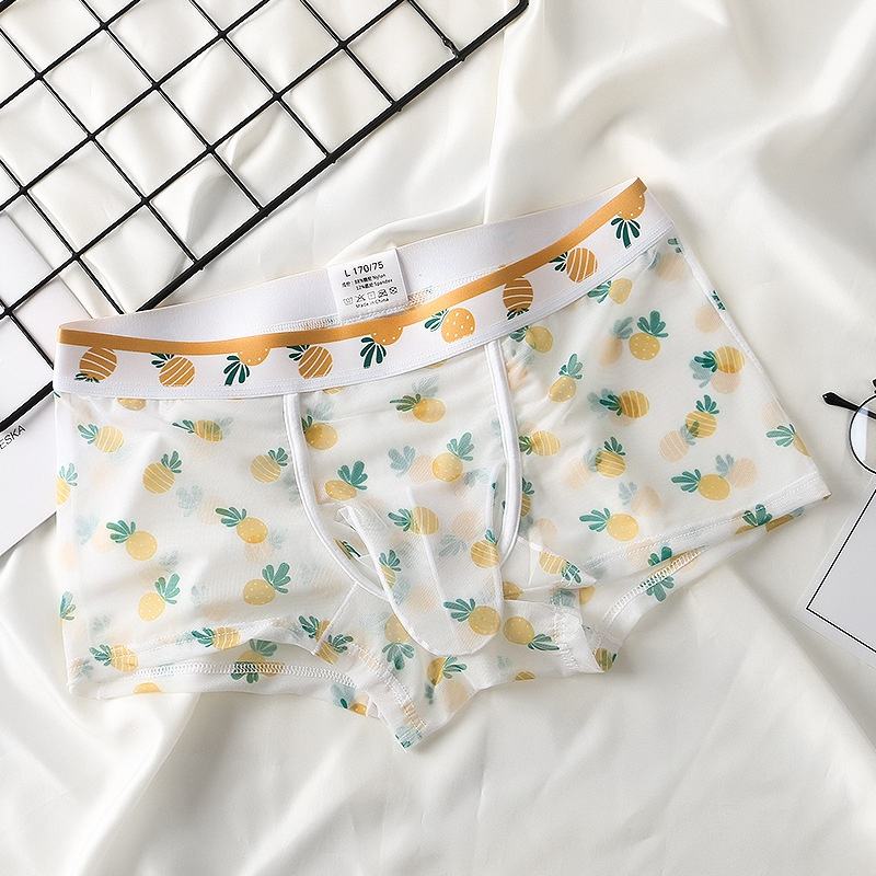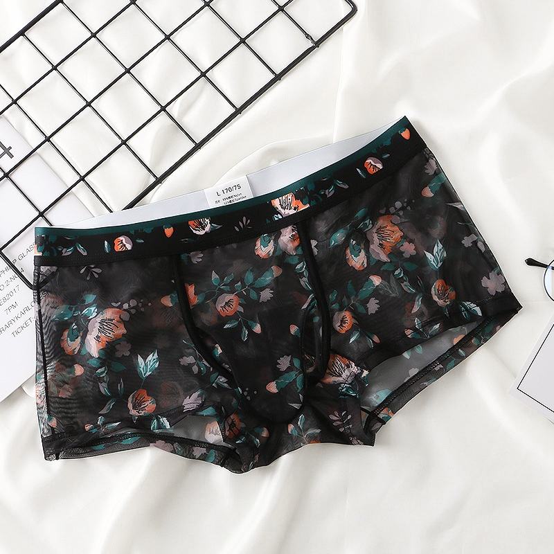 Sous-vêtements pour hommes en maille respirante, taille mi-haute, avec séparateur de testicules, motif floral esthétique, coupe slim, sport, motif nez d'éléphant