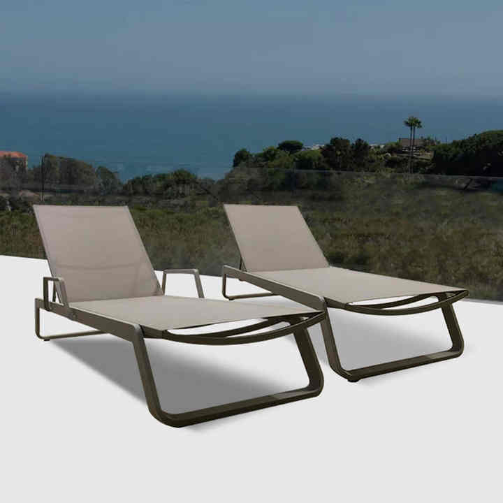 Chaise longue en maille Service de plage Location de piscine Mesh Sun Poolside Resort Hôtel Projet Transat Jardin Extérieur Chaise longue
