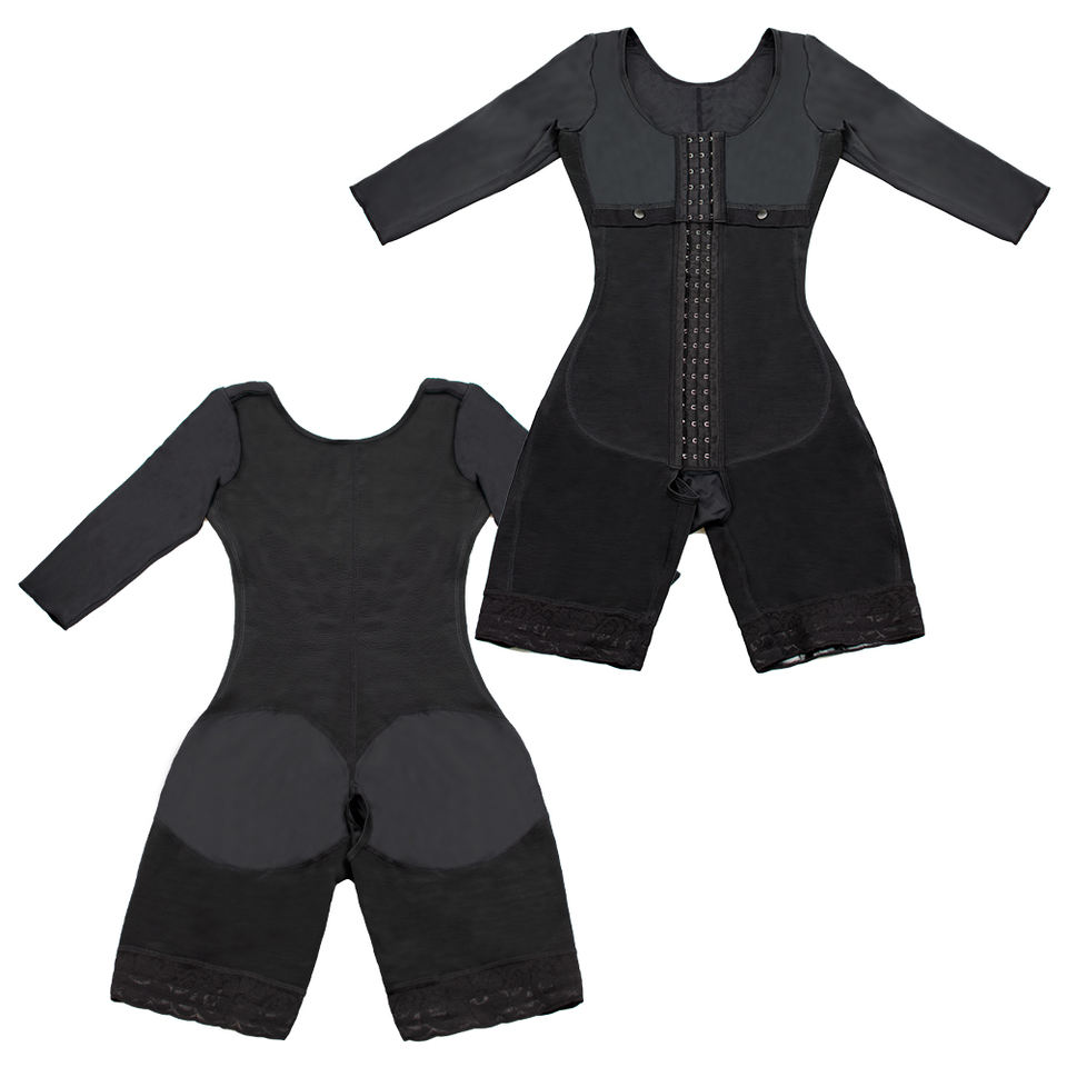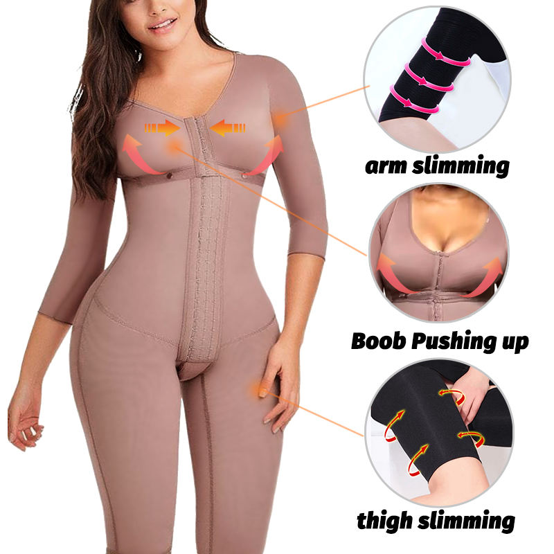 Body gainant amincissant intégral en maille à manches longues pour femmes, avec ceinture colombienne et effet corset pour les bras