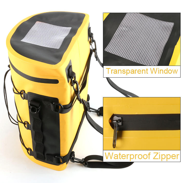 Sac à dos étanche semi-circulaire en PVC avec poche en filet, logo personnalisé, pour sports de plein air, surf, flottaison, moto, kayak, voyage