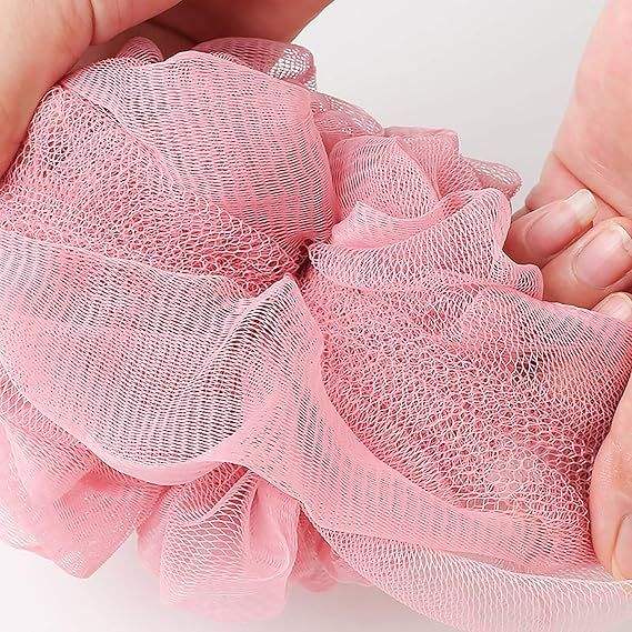 Éponge de bain en maille exfoliante avec accessoire de nettoyage, brosses de bain, éponges et gommages