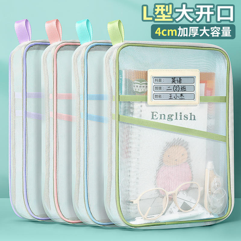 Sac de rangement en maille A4, épaissi, à fermeture éclair, double couche, portable, organisateur de manuels scolaires pour étudiants