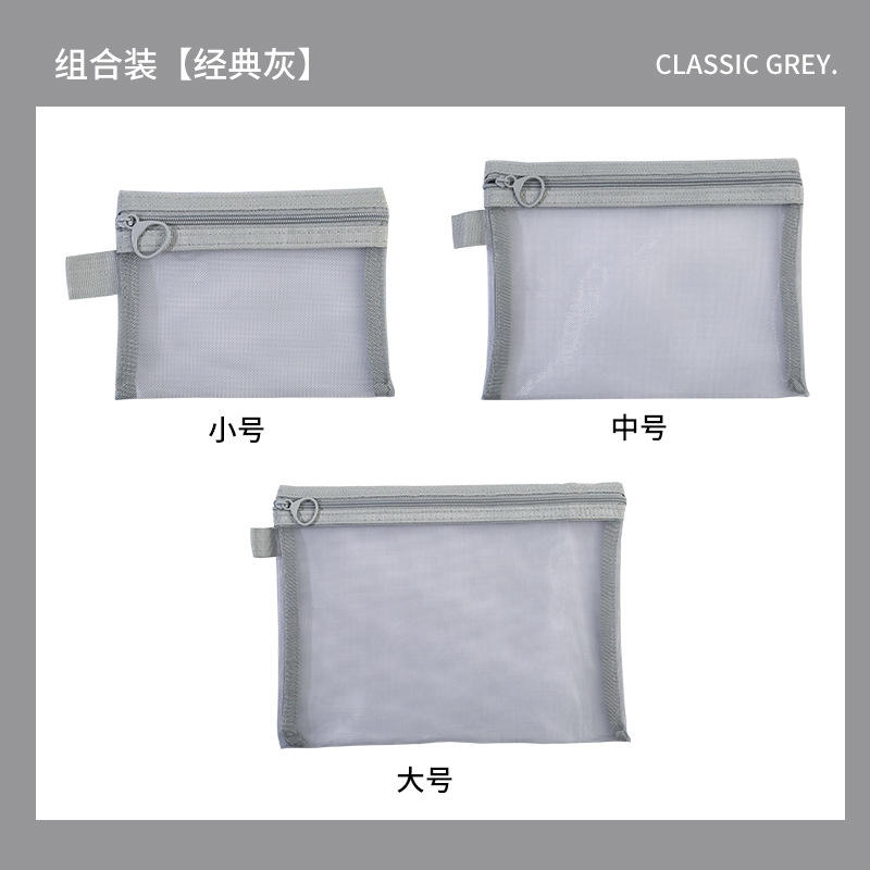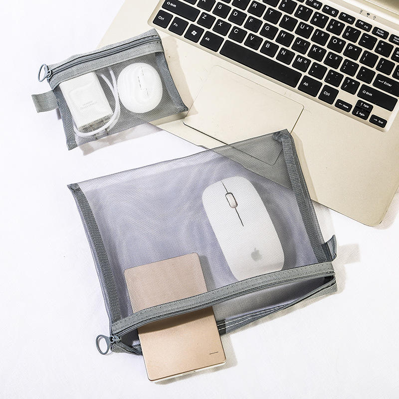 Sac de rangement en maille, pochette de rangement de voyage de grande capacité pour appareils électroniques et cosmétiques, gris et noir