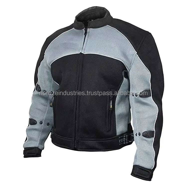 Blouson moto d'été en mesh léger pour homme, avec panneaux réfléchissants et protections CE, idéal pour l'aventure.