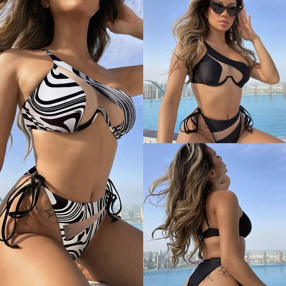 Ensemble de maillots de bain transparents en maille pour femme, bikinis sexy, maillots de bain bandage, soutien-gorge string, vêtements de bain pour femmes, vêtements de bain d'été