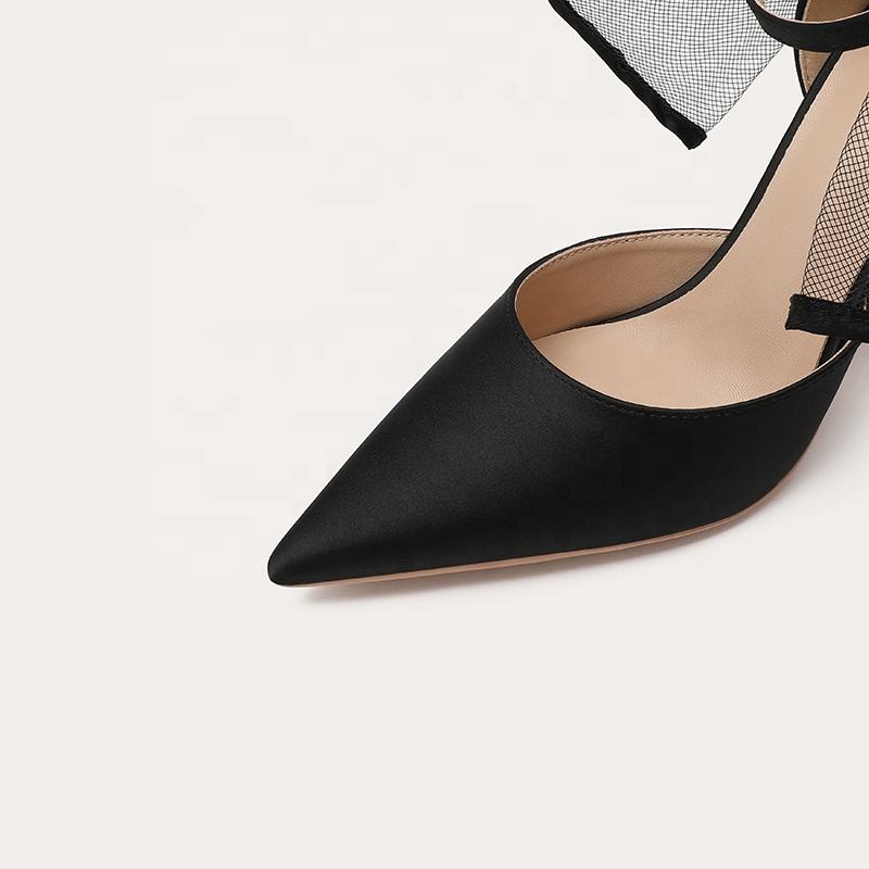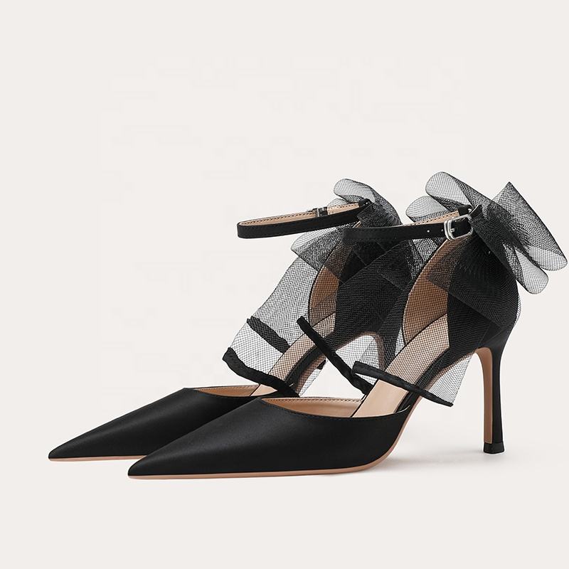 Fil de maille noir soie et satin bride à la cheville nue chaussures à talons hauts pour femmes chaussures sandales à talons pour dames chaussures de banquet
