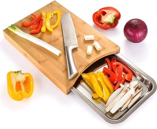 Planche à découper en bambou sans désordre avec plateau à tiroir coulissant Planche à découper en bois avec plateaux