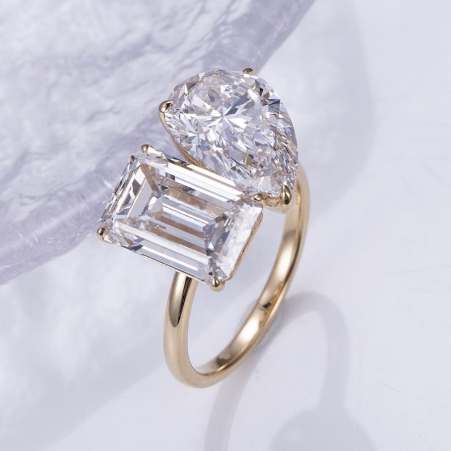 Bague de fiançailles en diamant de laboratoire IGI de 5 carats, taille poire, émeraude, en or 18 carats, personnalisée par Messi