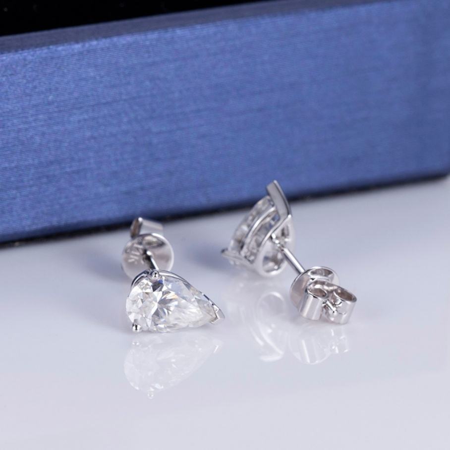 Boucles d'oreilles clous en or jaune 14 carats avec moissanite poire couleur DEF de Messi Jewelry