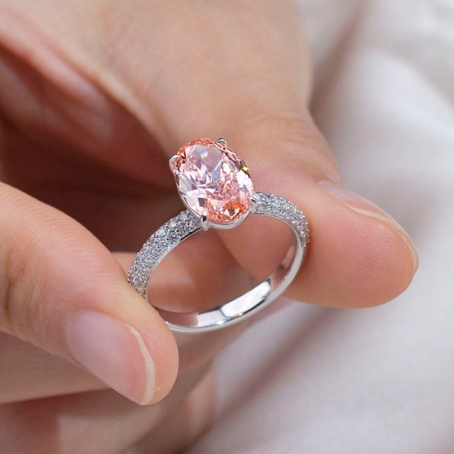 Bague personnalisée Messi Jewelry, modèle MSR-1866, taille ovale, 3,1 carats, or blanc 18 carats, diamant de laboratoire de luxe.