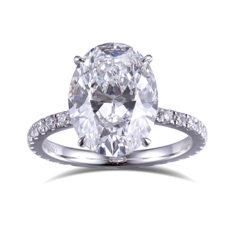 Bague éternité en or 18 carats avec diamant de laboratoire ovale taille brillant VVS1 de 3,11 carats, modèle MS-552 D de Messi Jewelry