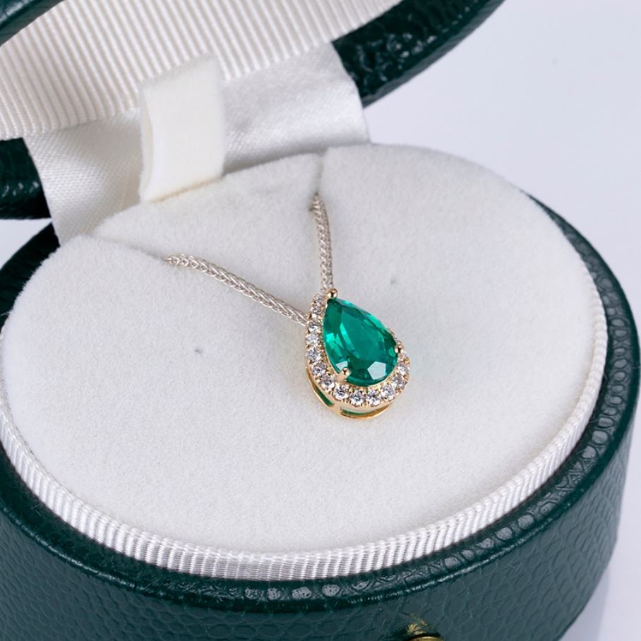 Pendentif en émeraude de laboratoire 18 carats Messi Jewelry MSN-636, design poire, pour fête/femmes